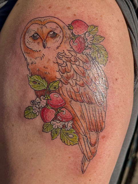 Goose tattoos at Familia Tattoo in Redmond, Oregon, where she brings a warm, collaborative approach to every project. Whether she's designing a vibrant nature scene or a delicate botanical, her focus is on crafting meaningful art that connects clients to their stories and the world around them.